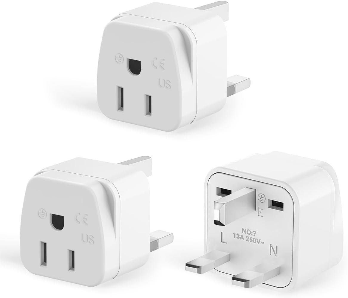 3-Pack US to UK Plug Adapter,SHUOMAO 2/3 Pin USA 3 Plug...