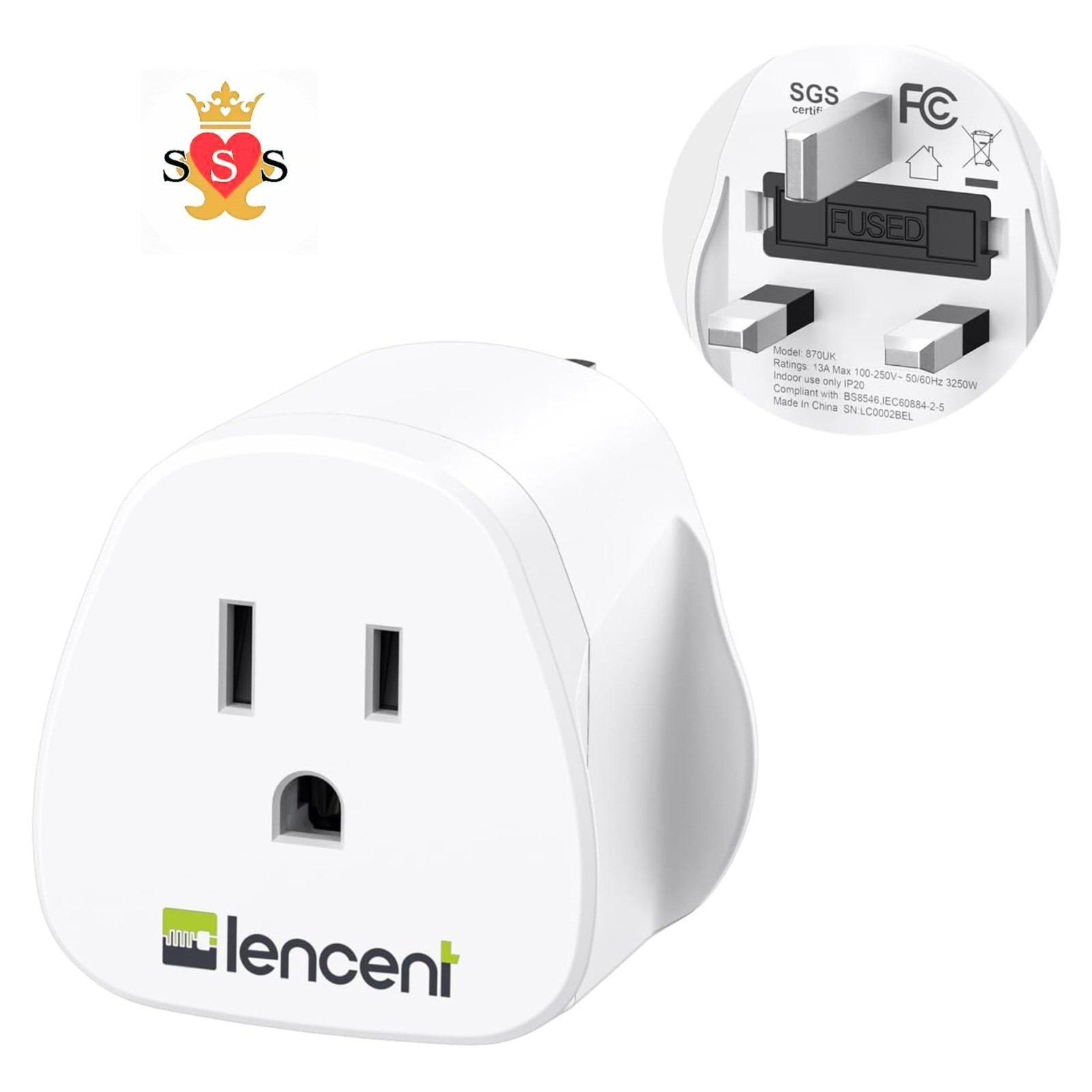 LENCENT US to UK Plug Adapter, 2/3 Pin USA to 3 Pin UK Plug Adaptor, American/Me