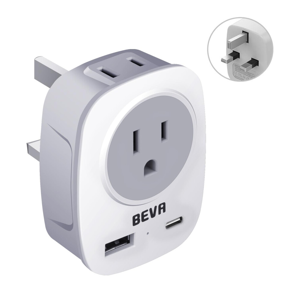 US to UK Plug Adapter, BEVA 2/3 Pin USA to 3 Pin UK Travel Adaptor with 2 USB S