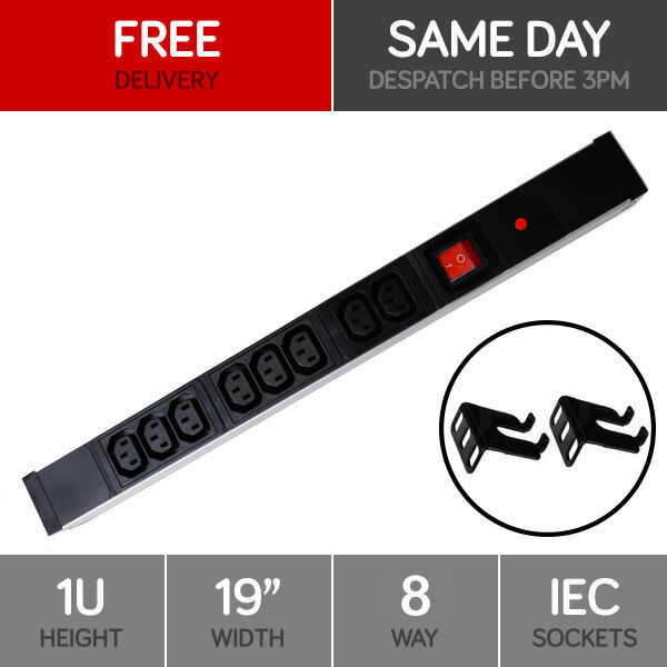 Power Distribution Unit 8 Way C14 IEC Circuit Breaker 19" PDU to UK Plug