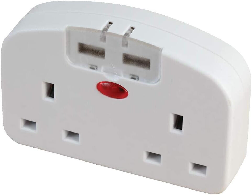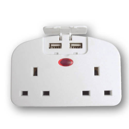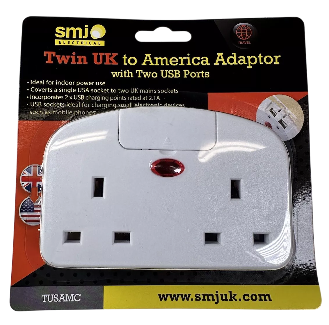 Twin UK to USA US 3 Pin Travel Plug Power Mains Adaptor - White 2 USB Ports UK