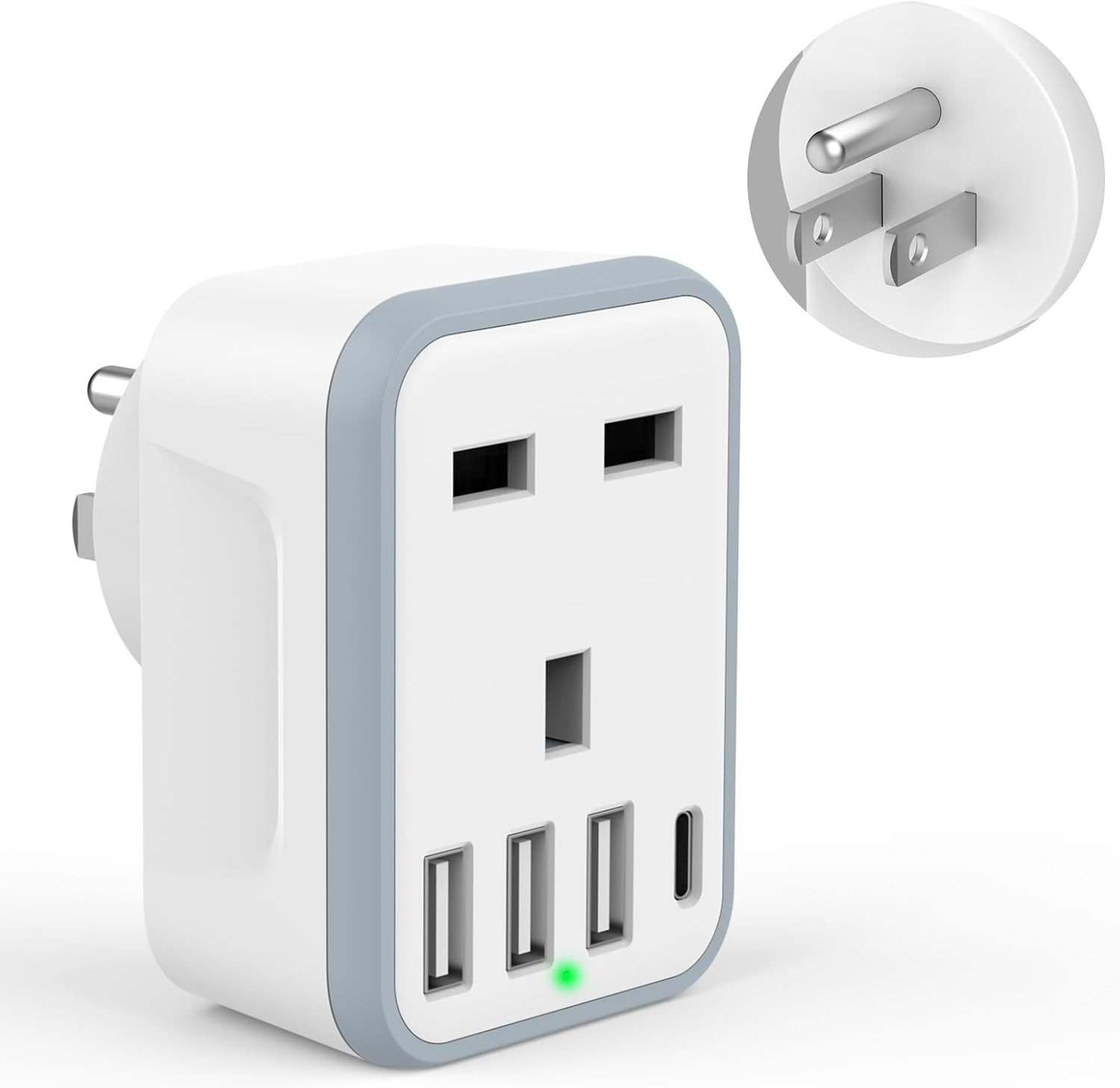UK to US Plug Adaptor, USA Travel Adapter 32W USB C Fast Charger Large, Grey