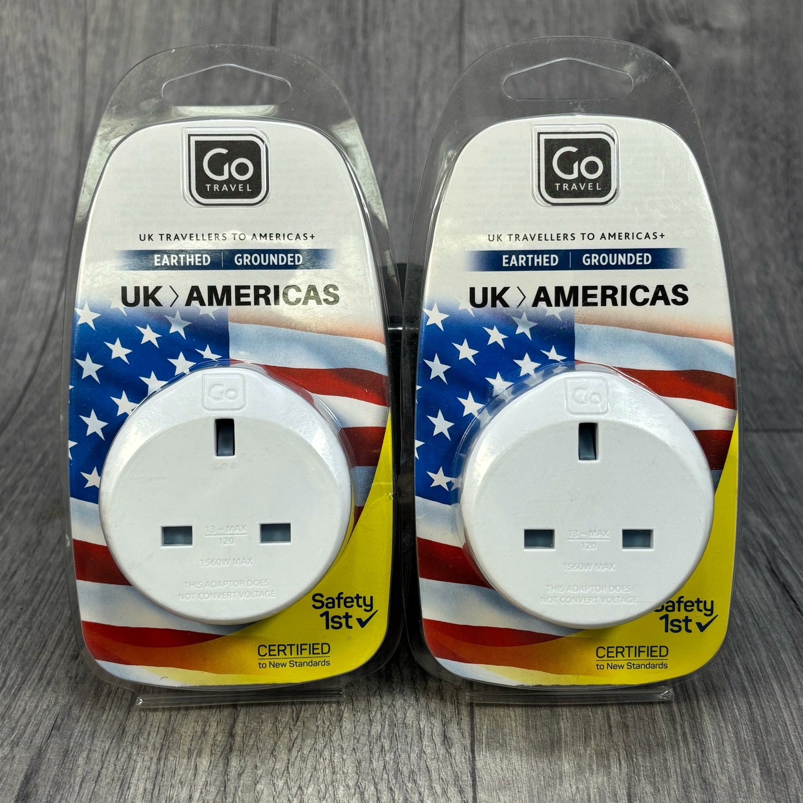 UK to Americas USA Earthed Travel Adapter Plug Safety Certified Go Travel x2