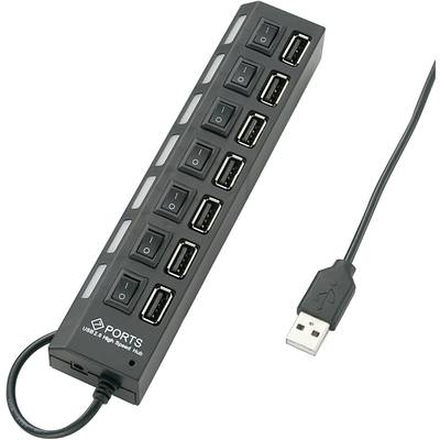 Renkforce 7 ports USB 2.0 hub individually connectable, + LED indicator lights Black