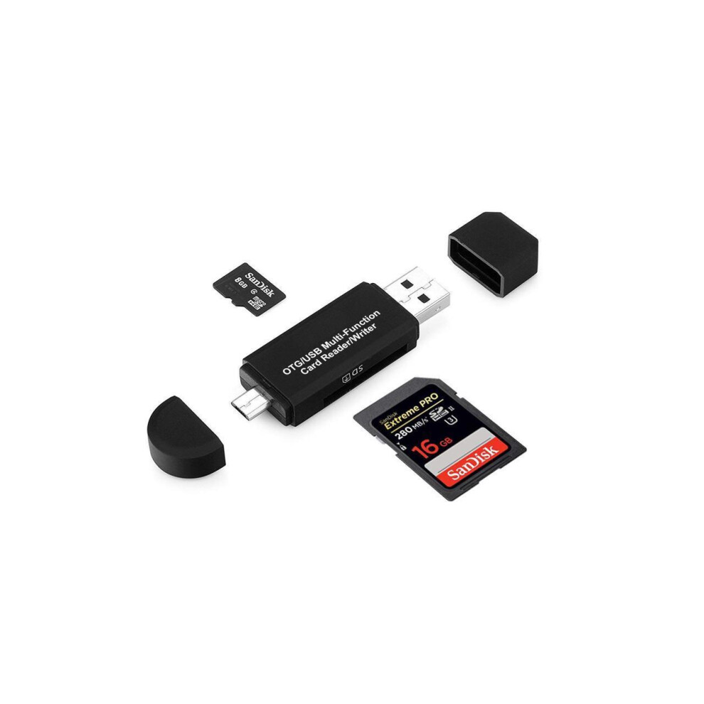 Micro USB OTG to USB 2.0 Adapter SD Micro SD Card Reader with Standard USB Male & Micro USB Male Connector for Smartphones Tablets with OTG Function
