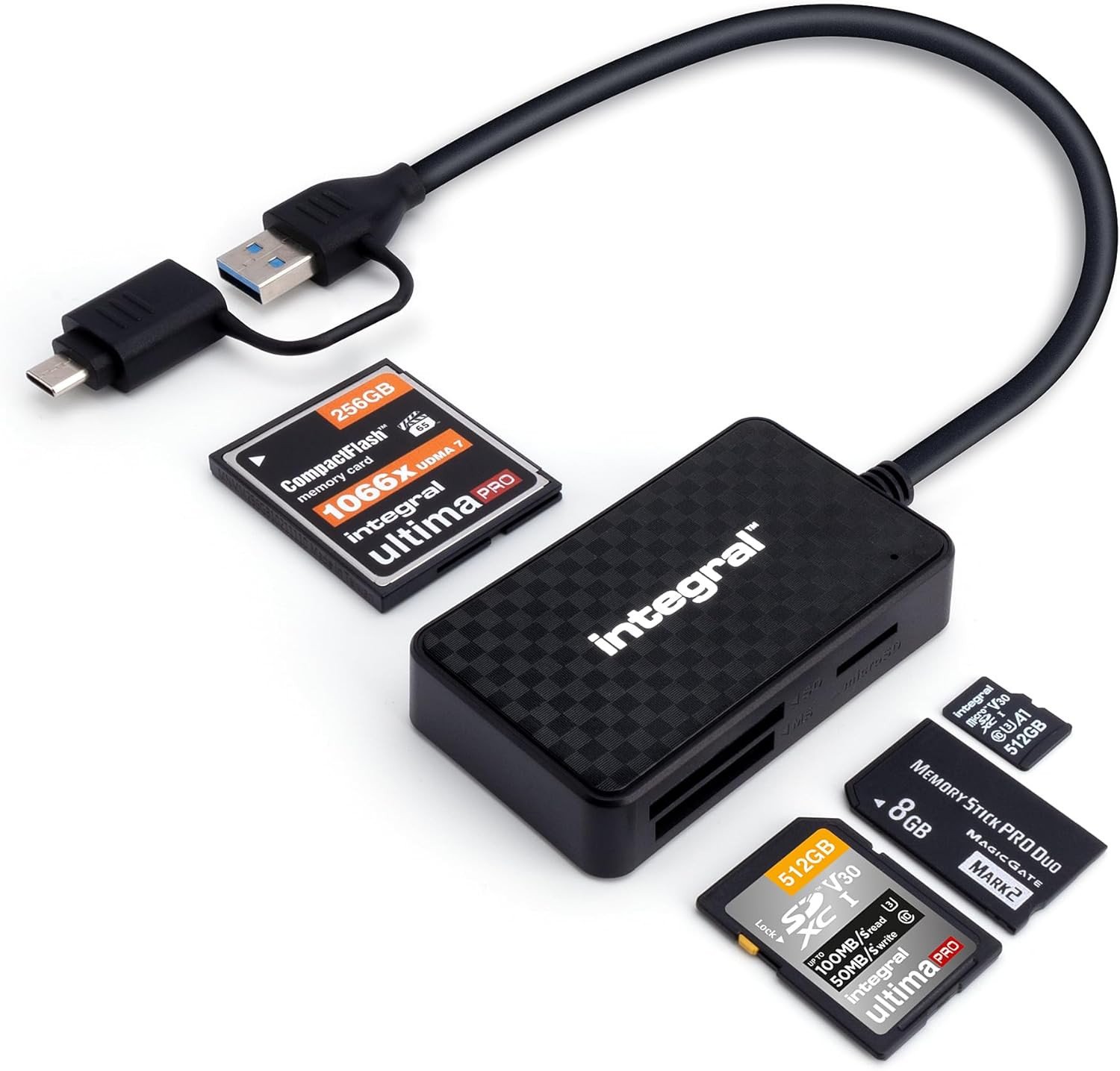 Integral 4In1 Memory Card Reader, USB 3.0 & USB C Adapter to Microsd, SD, Compac