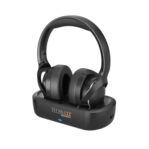 Technaxx Wireless TV Headphones with Charging Base – Bluetooth 5.4 Over-Ear Headset with Microphone, 30h Battery, USB-C, Optical & AUX Input – Ideal for Seniors, TV & Music - TX-350