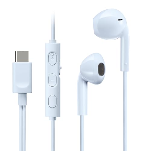 USB C Headphones for iPhone 17 16 15 Pro iPad Pro, USB Type C Earphones USB C Wired Earbuds Microphone Volume Control for Samsung S25 S24 Ultra S23 S22 S21 Note20 A54, Pixel 9 8 7 6 6a 5 4,OnePlus9