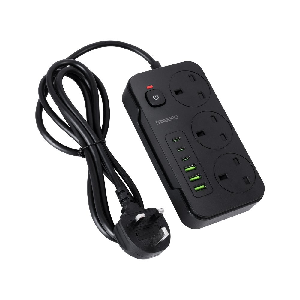 Power Strip 3 USB-C PD Extension Lead 3 USB Port Power Strip with 3 Way Sockets