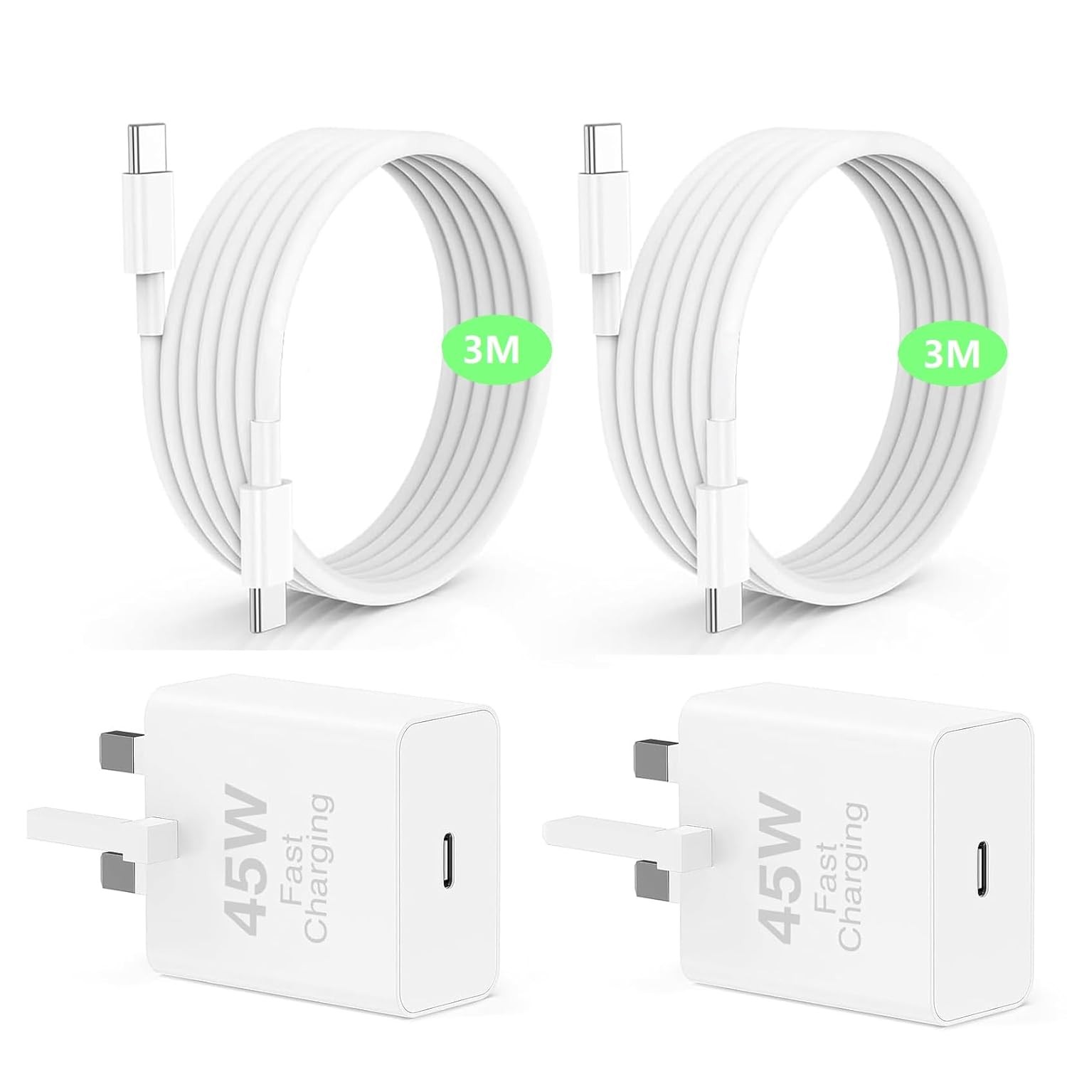2Pack 45W iPhone 17 16 15 Charger Plug, 3M USB C Fast Charging Lead and Wall Ch
