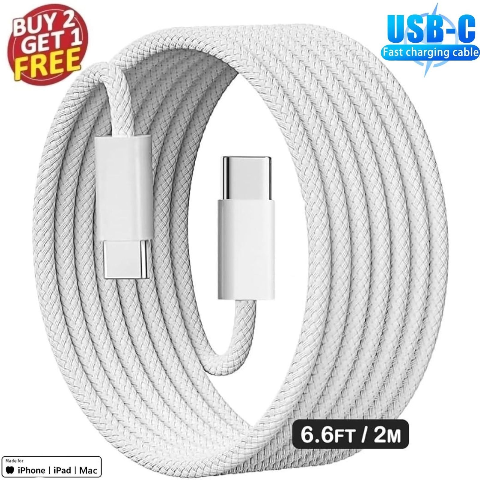 RAVIAD USB C Charger Cable 3Pack 2M Type C Cable Fast Charging 3A Braided USB A to USB-C Phone Charger Lead USBC for iPhone 16/15 ProMAX, iPad Pro, Galaxy S24 S23 Ultra, P50/P40, Pixel 9