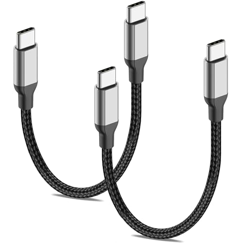 Short USB C to USB C Charger Cable Fast Charging 2 Pack 15CM 60w, Nylon Braided Short USBC to USBC Cable PD Fast Charge 0.5ft USB-C Charger Lead 15 CM for iPhone 17/16/15 iPad Samsung Power Bank