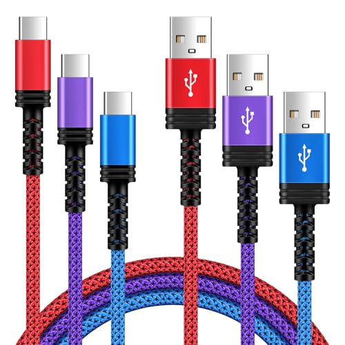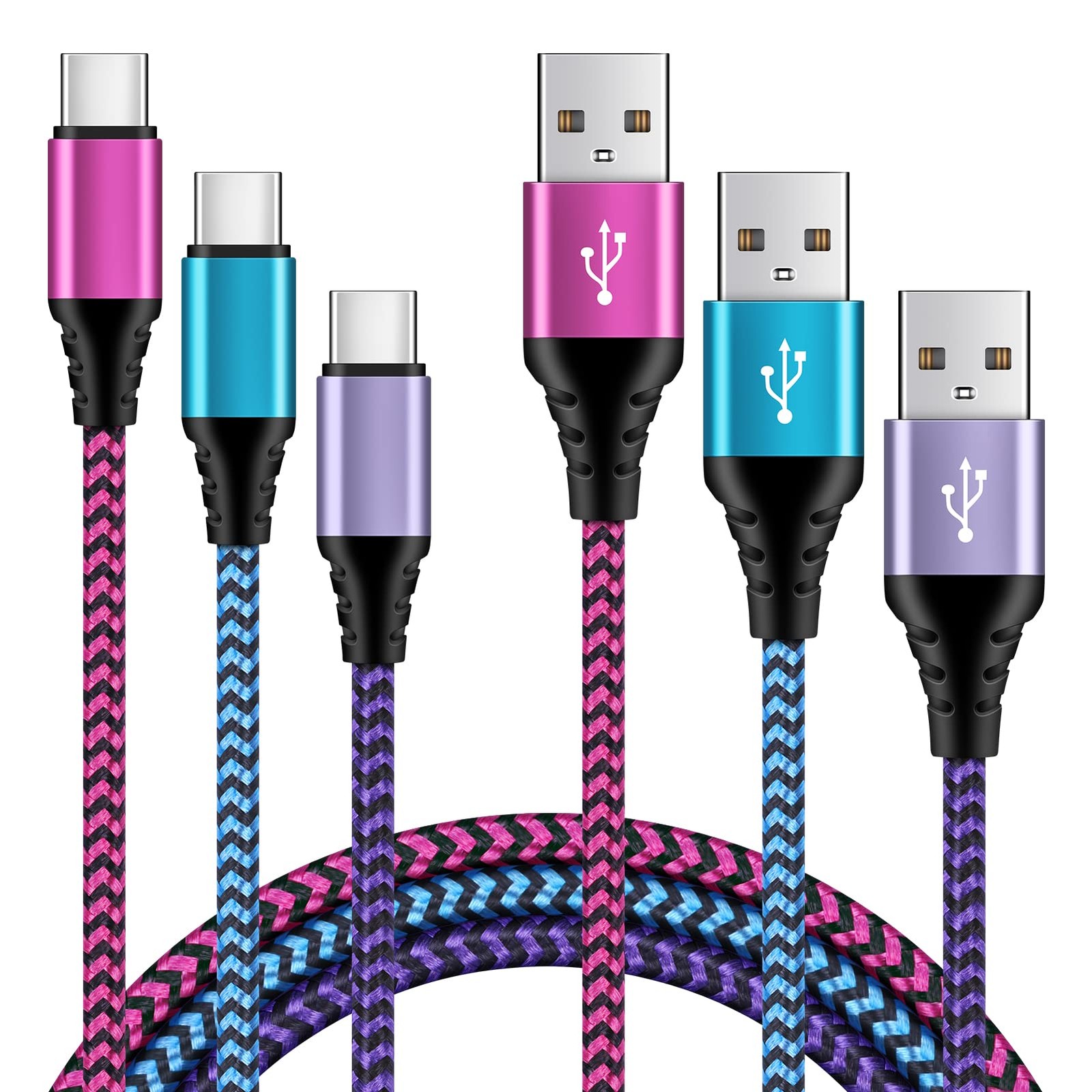 USB C Cable,[3Pack/6FT+6FT+6FT] USB Fast Charge Cable USB Type C Lead Nylon Wall Charge Cord USB-C to USB-A for Samsung Galaxy S24 S21 Note 10 S9 A20 A12 A20e A21s A70,Huawei P30 P20,Google,Oneplus