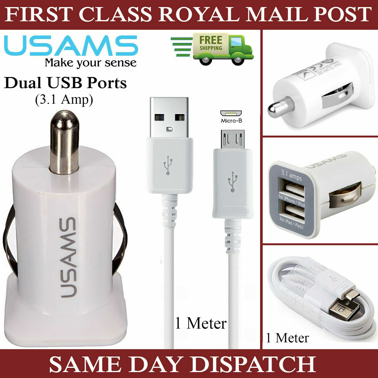 New Dual USB 2 Port 3.1A Car Charger Adapter & USB-C Data Lead