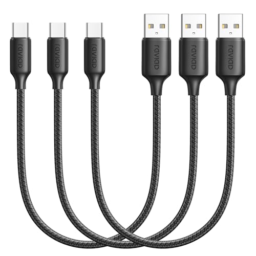 RAVIAD USB C Charger Cable 3Pack 0.5M Type C Cable Fast Charging 3A Braided USB A to USB-C Phone Charger Lead USBC for iPhone 16/15 ProMAX, iPad Pro, Galaxy S24 S23 Ultra, P50/P40, Pixel 9
