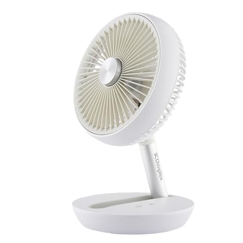 Dimplex Cordless Desk Fan, Whisper Quiet, 15-Hour Run Time, 4 Fan Modes, 4000mAh, DC Motor, Foldable Design for Easy Storage, USB-C, Dust Bag, Carry Strap, Portable for Home & On-The-Go, DXRCFN, White
