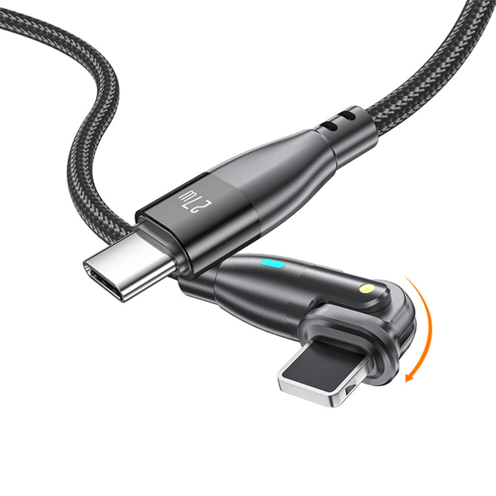 (Black) PD 27W USB-C to Lightning Cable 2m Fast Charging Data Cord with 180 Degree Rotating Connector - Black