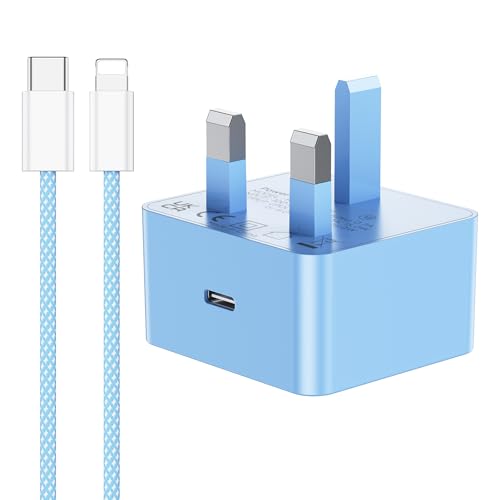 iPhone Charger Plug, MFi Certified 20W PD USBC Power Adapter UK Type C Fast Charger Plug with USB C to Lightning Cable 2m for iPhone 14/14 Plus/14 Pro Max/13/12/11/XS/XR/XS/8 Plus, iPad Air, AirPods