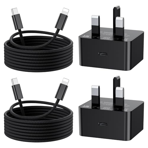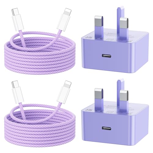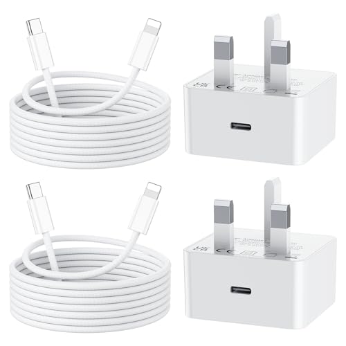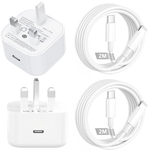 iPhone Charger Fast Charge, 2Pack 20W USB C Plug UK With iPhone Charger Cable 2m [MFi Certified], 3.0A Fast Charging USB C to Lightning Cable for iPhone 14 13 12 11 Pro Max X SE 8 7 6 Plu,iPad,AirPods
