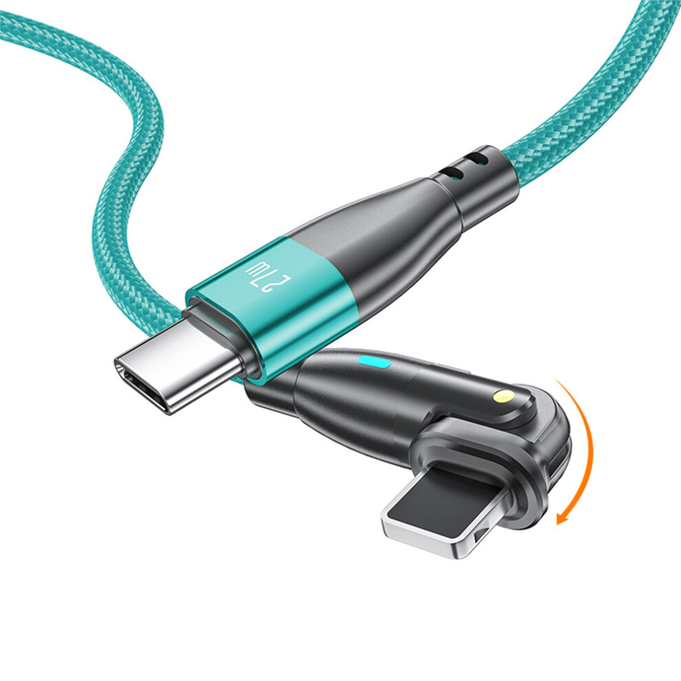 (Green) PD 27W USB-C to Lightning Cable 2m Fast Charging Data Cord with 180 Degree Rotating Connector - Black