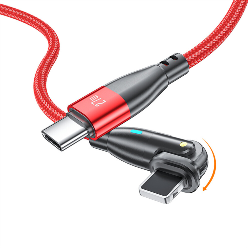 (Red) PD 27W USB-C to Lightning Cable 2m Fast Charging Data Cord with 180 Degree Rotating Connector - Black