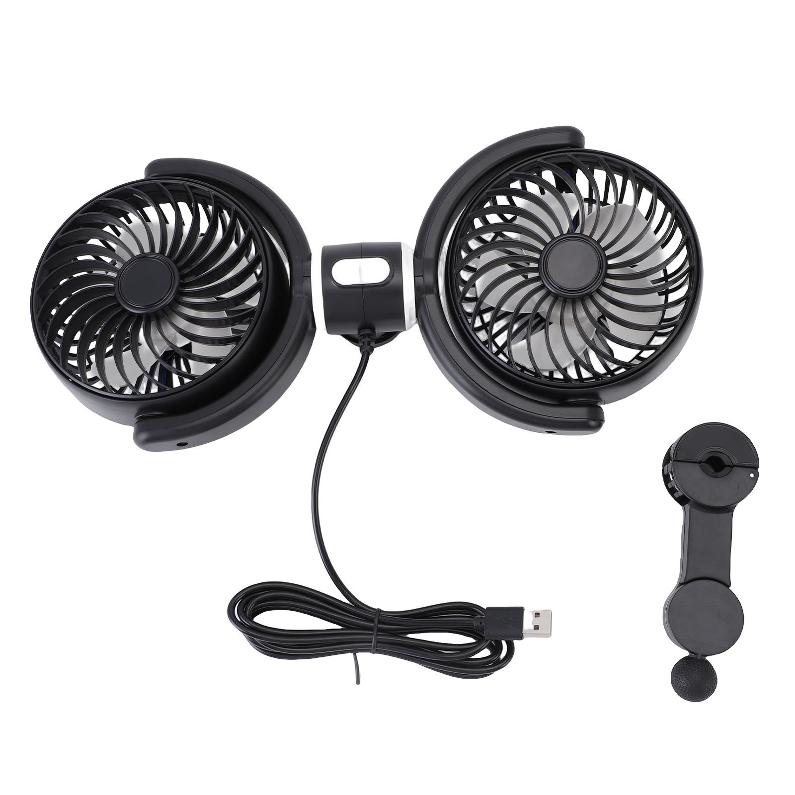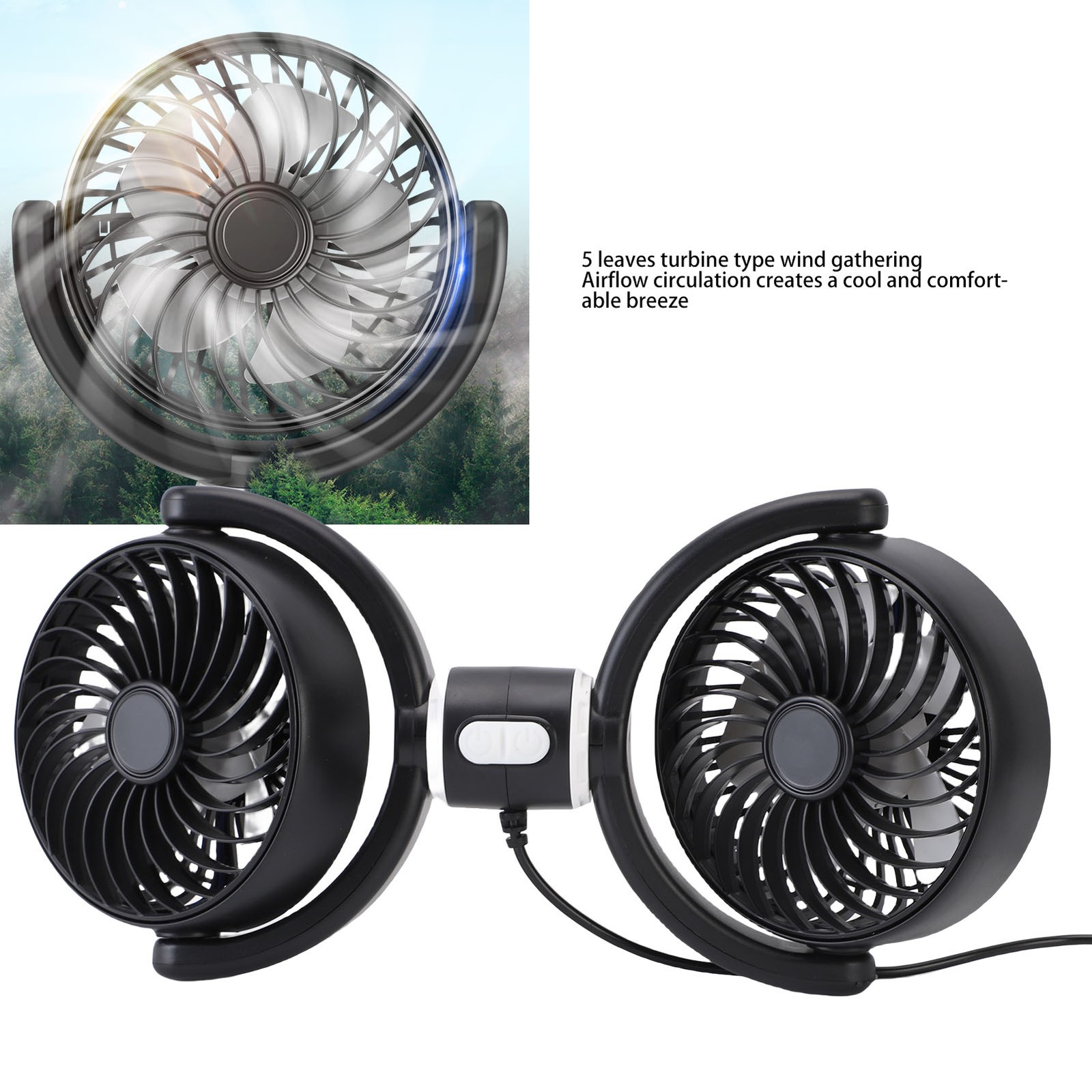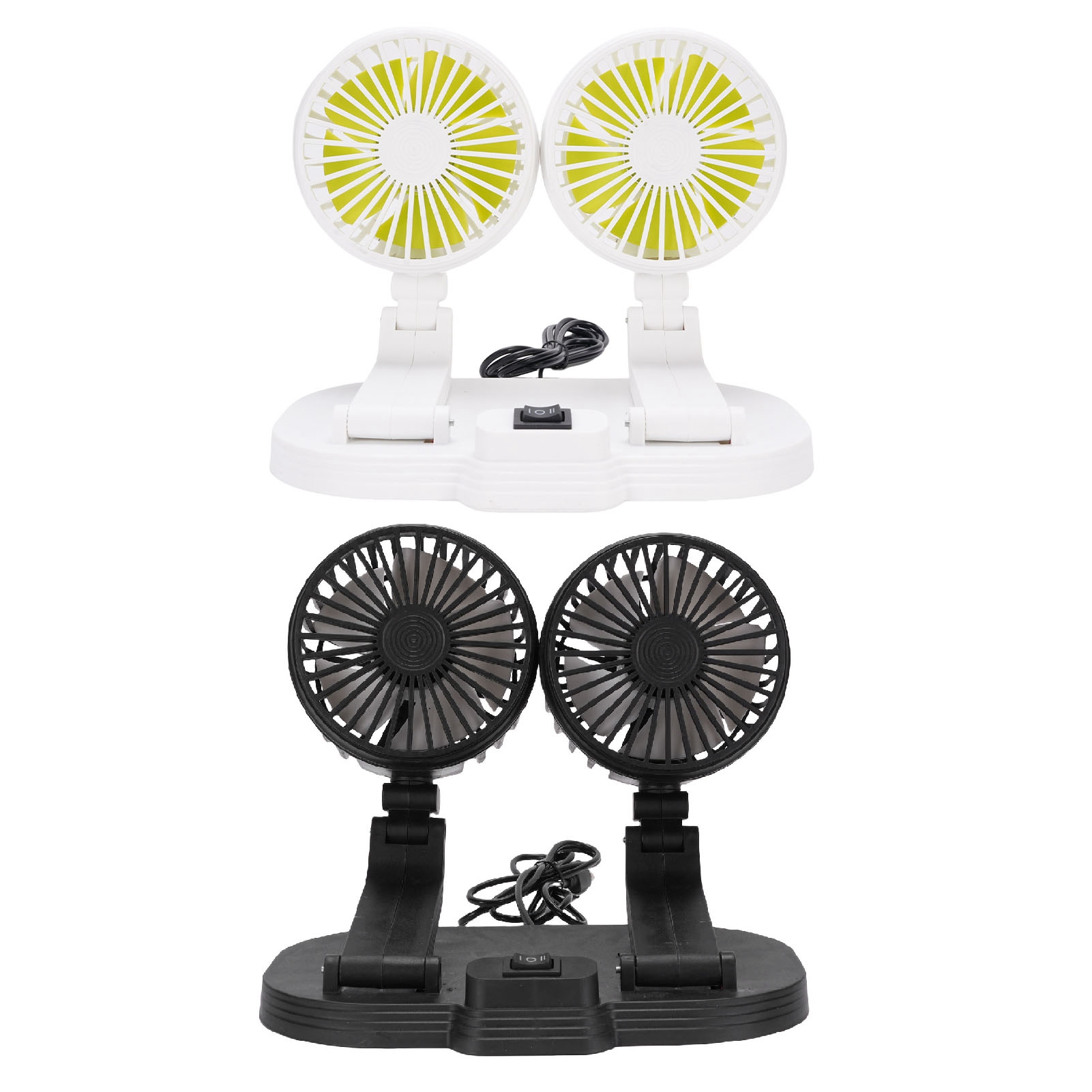 Dual Head USB Car Fan Portable Car Cooling Fan 2 Wind Speed For Trucks RV Sedans