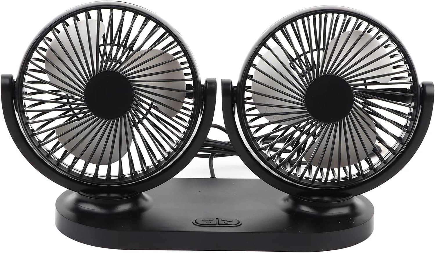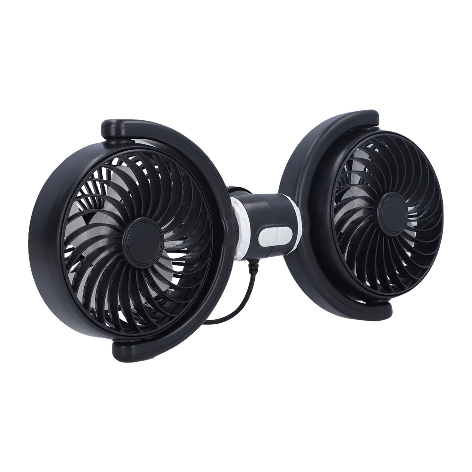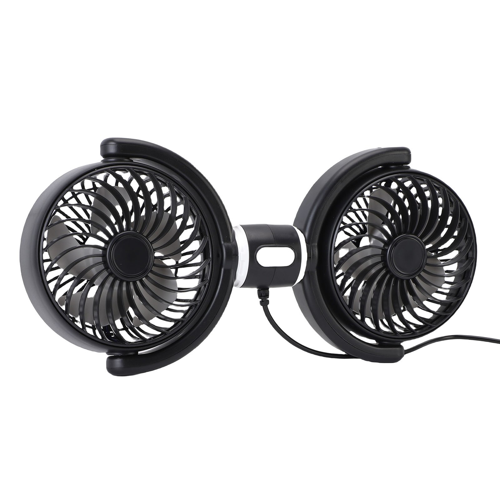 Dual Head USB Car Fan Portable Car Cooling Fan 2 Wind Speed For Trucks RV Sedans