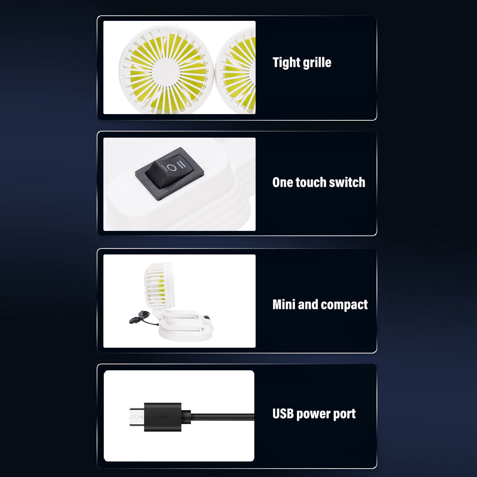 KHTO Portable 4-Inch USB Cooling Fan Small 4 Blades Desk USB Cooler Super Mute Silent Mini Car USB Fan for PC/Laptop/Notebook