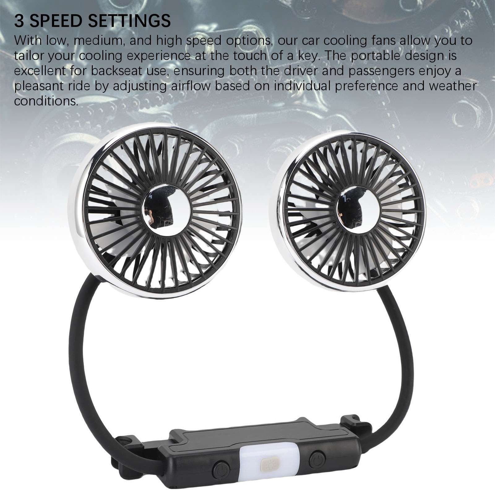 Dual Head Car Fan USB Car Backseat Cooling Fan Easy Install For Outdoor