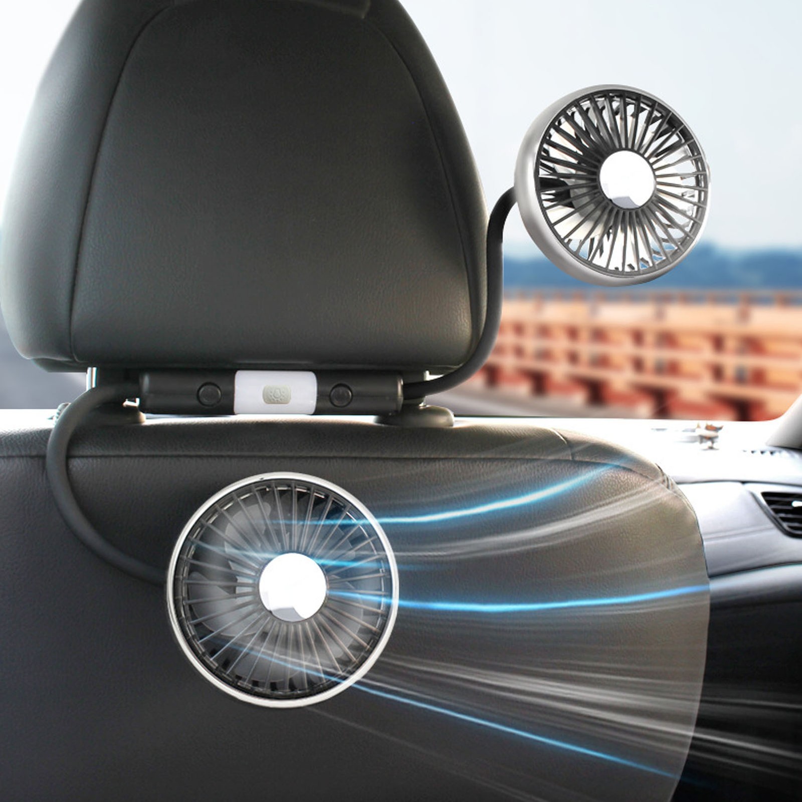 Car Back Cooling Fan 3 Speed USB Car Rear Headrest Fan 360° Rotatable Car2374
