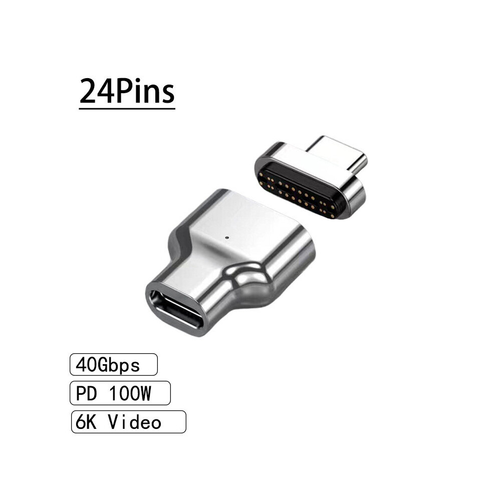 (a-24PIN Plug) Magnetic USB C Adapter 24Pins Type C Connector PD 100W Fast Charging 40Gbp/s Converter for Thunderbolt 3 iPad MacBook Pro Switch