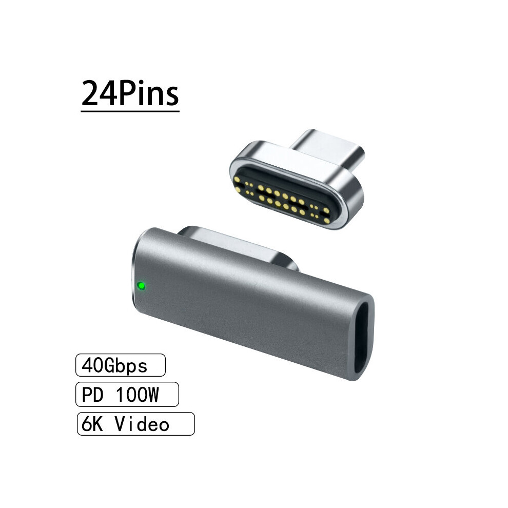 (a-24PIN Grey) Magnetic USB C Adapter 24Pins Type C Connector PD 100W Fast Charging 40Gbp/s Converter for Thunderbolt 3 MacBook iPad Pro Switch