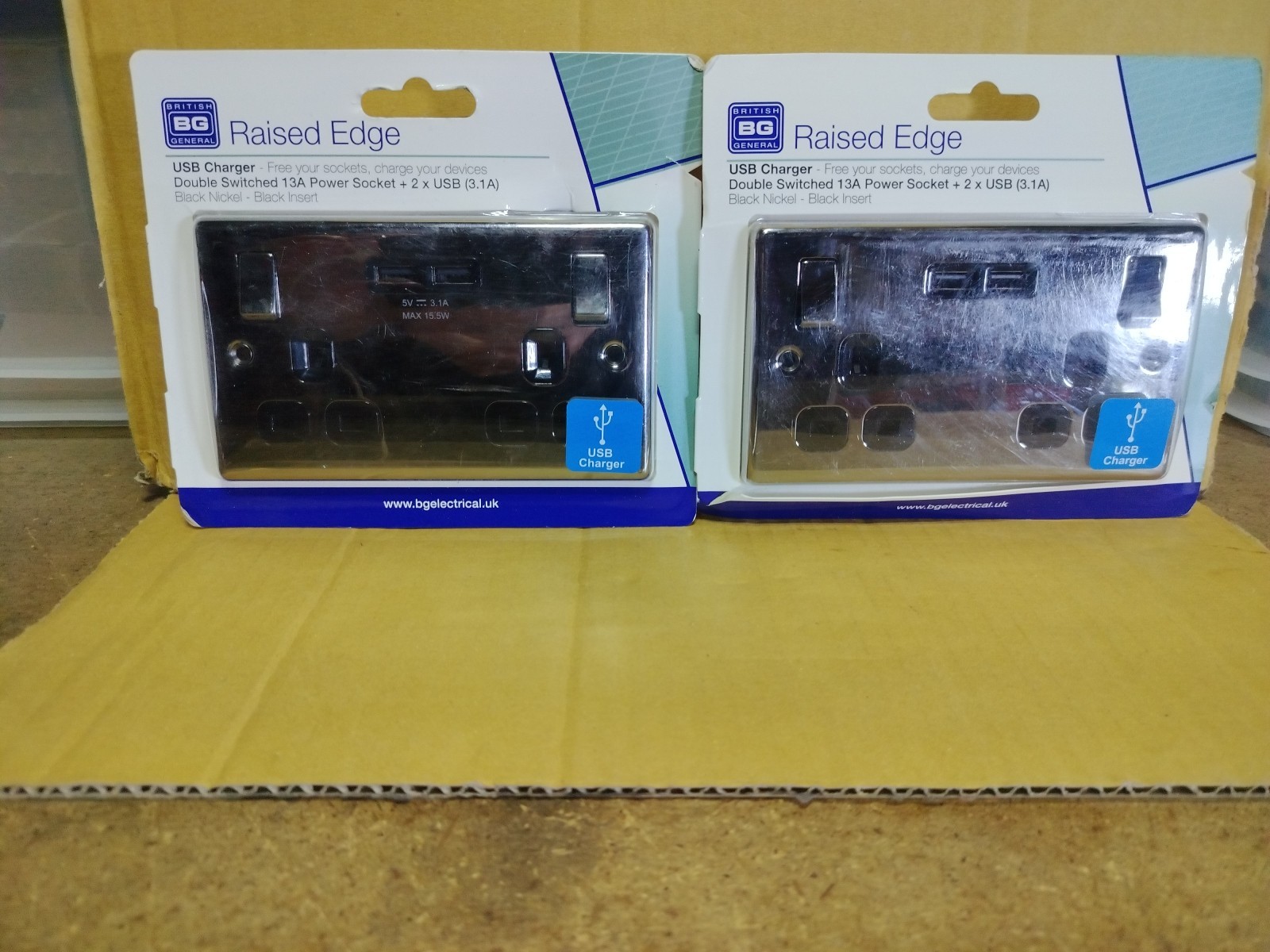 2x BG Black Nickel USB 3.1A Double Socket 2 Gang White Insert CBN22U3B