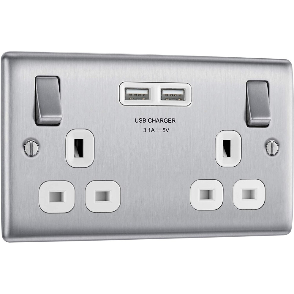 BG nbs22u3w Electrical Double Switched Fast Power Socket with Two USB Charging Ports, 13 Amp, Brushed Steel, Label â1'