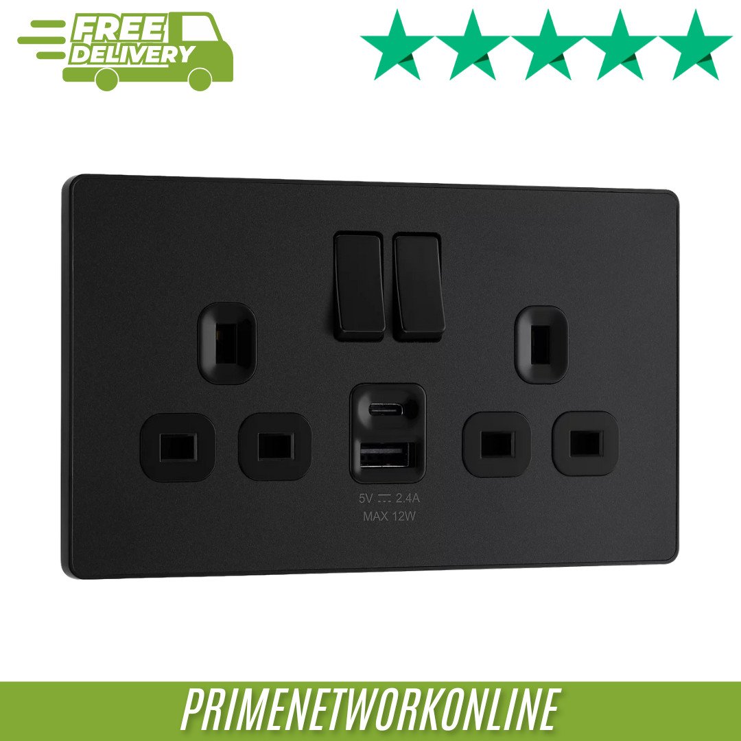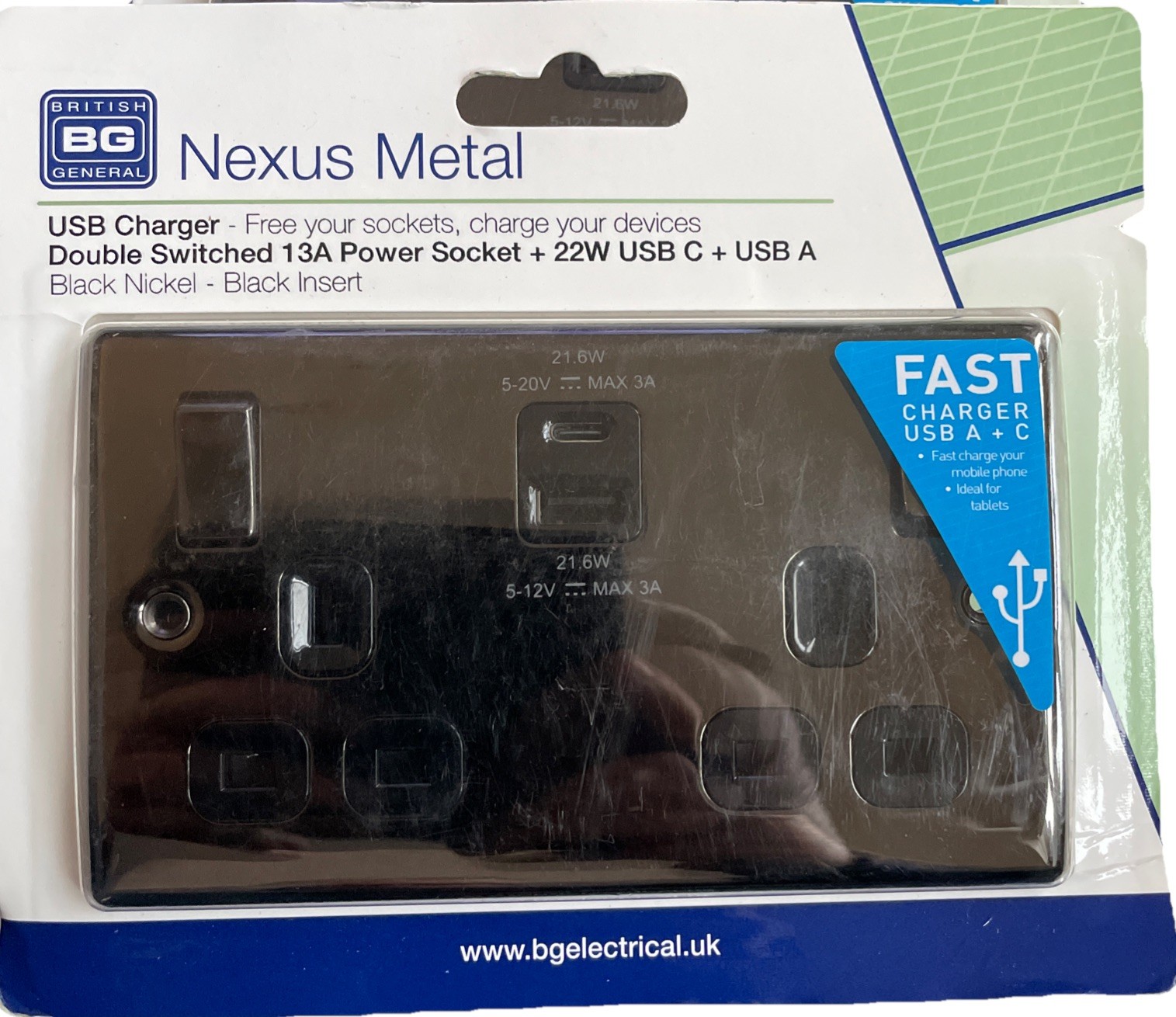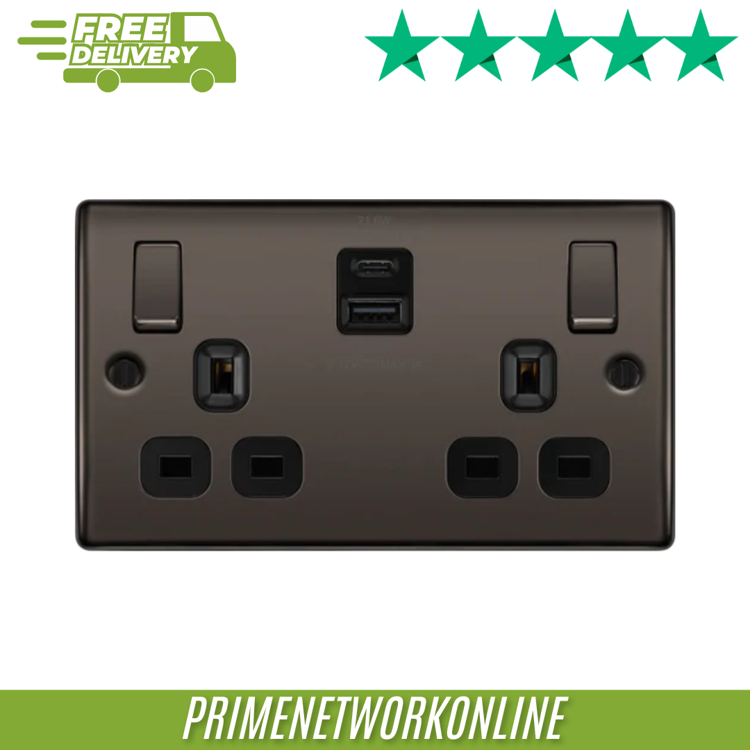 BG Black Nickel Double Switched Socket with USB A & C 100% ORIGINAL ⭐⭐⭐⭐⭐