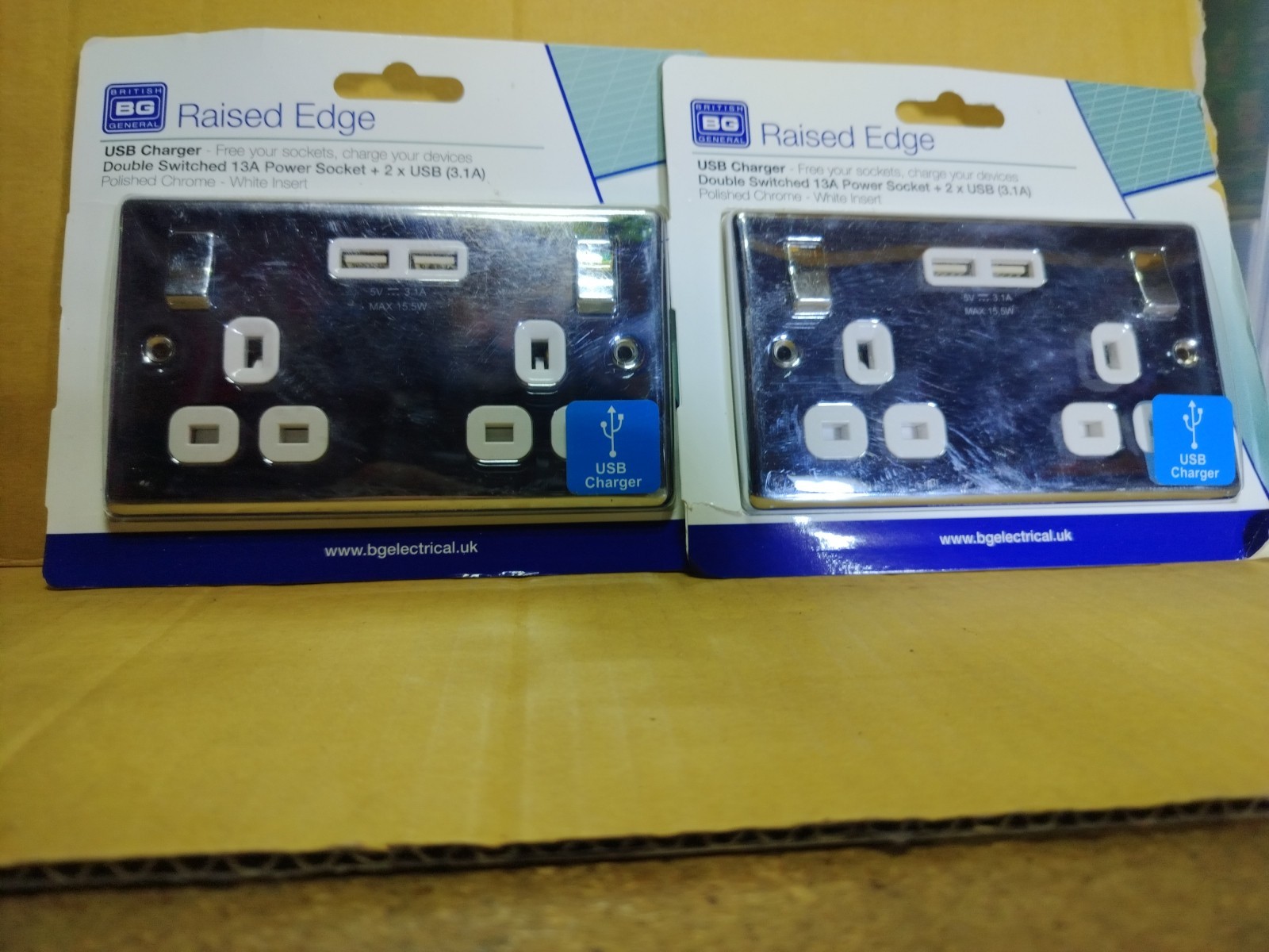 BG Polished Chrome USB 3.1A Double Socket Charger 2 Gang White Insert X 2 Units.