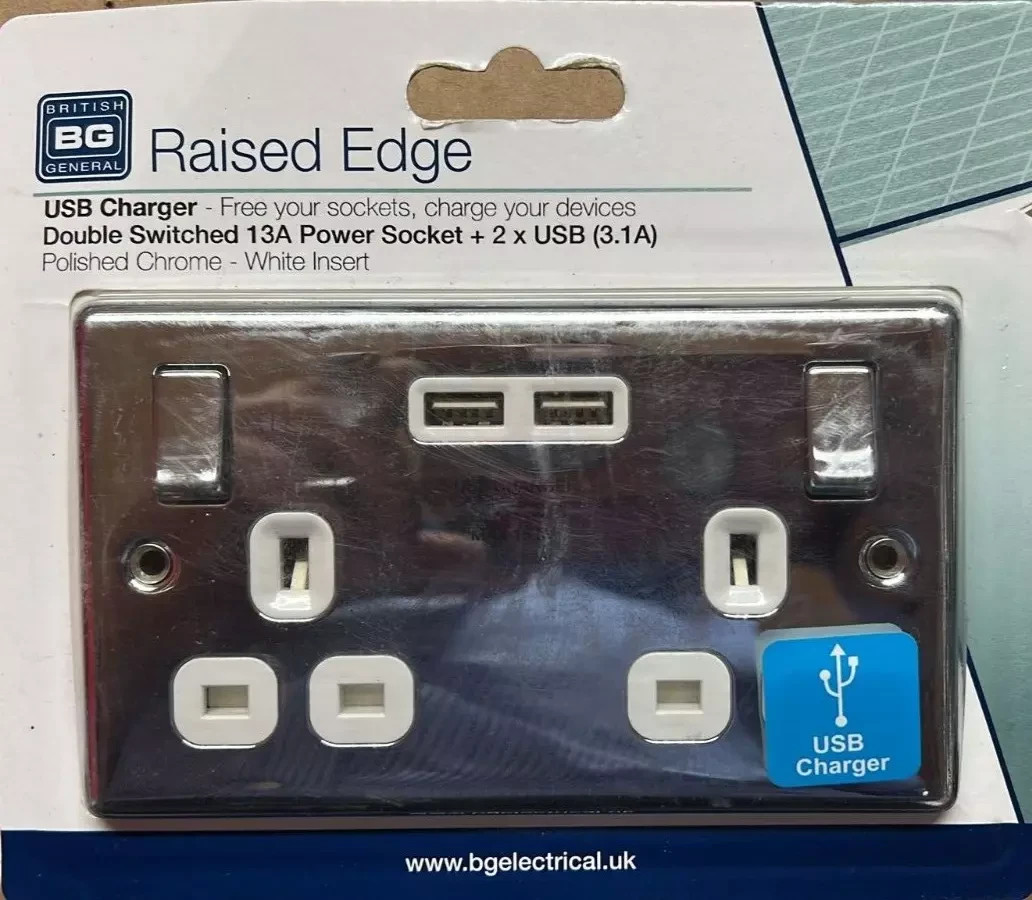 BG Polished Chrome Double 13A 22W Raised Slim Switched Socket with USB ⭐⭐⭐⭐⭐