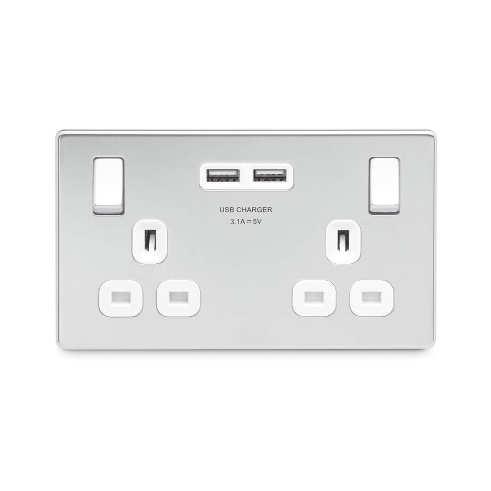 BG Polished Chrome USB 3.1A Double Socket Charger 2 Gang White Insert CPC22U3W
