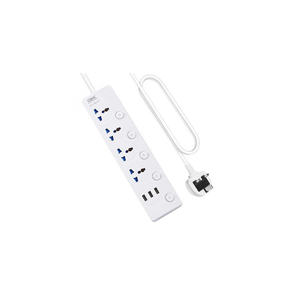 4 Way Extension Lead 3M/9.84FT with 3 USB Slots,Protected Extension Cord with Individual Switches,13Amp UK Plug Wall Mounted Power Strip for Home