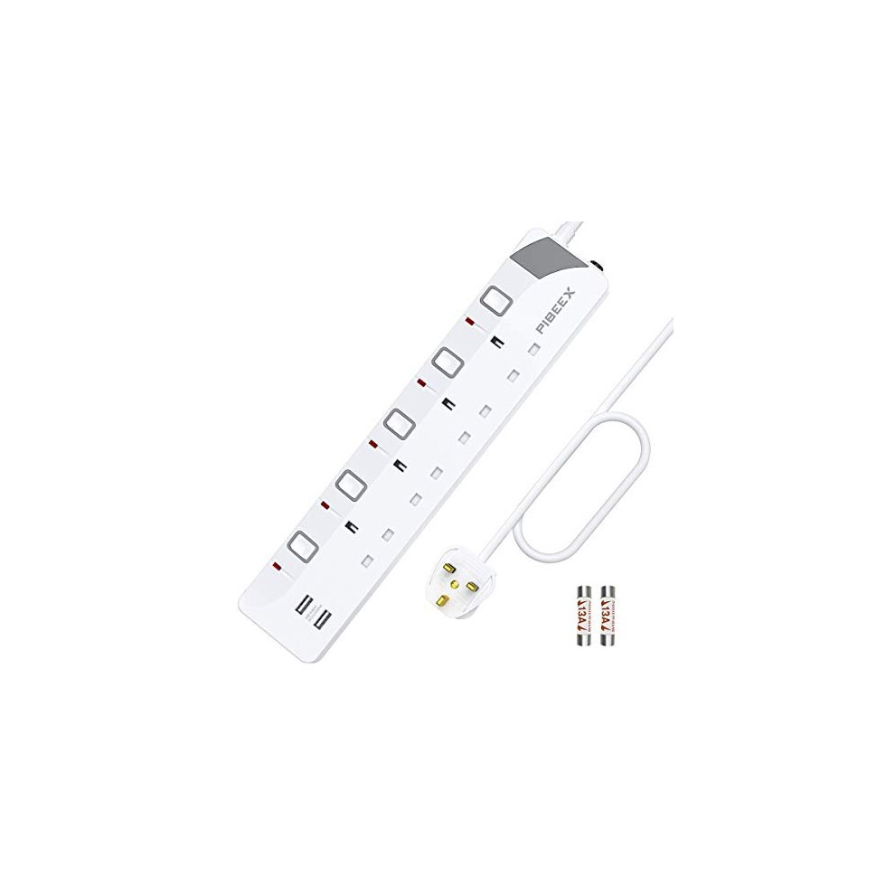 PIBEEX Extension Lead with USB Slots 13A 4 Way Plug Sockets with Individual Switches 2 USB Ports Extension Cord Mountable Power Strips with