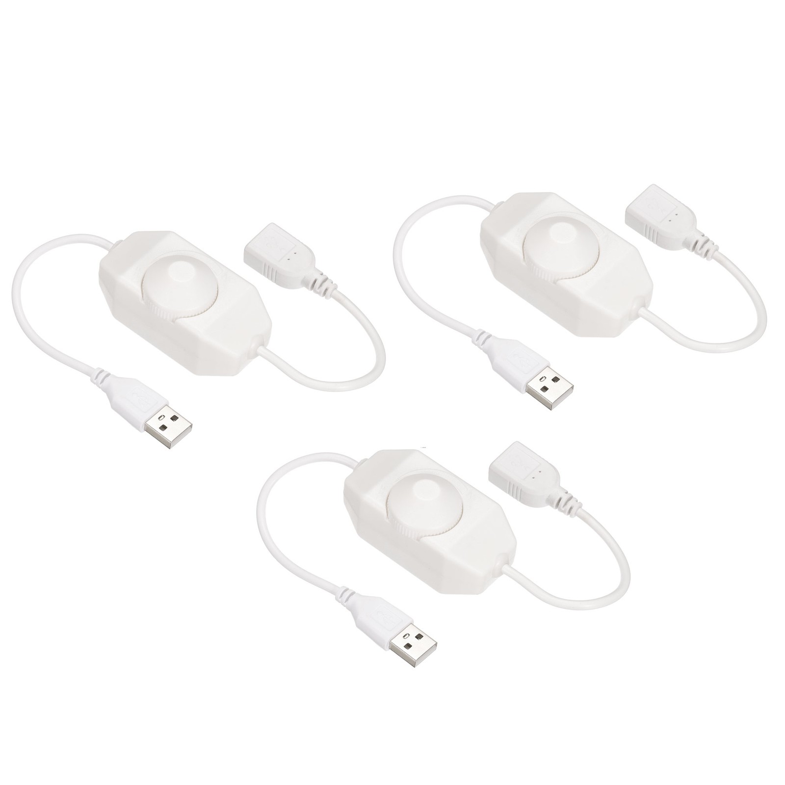 3Pcs LED Strip Dimmer Switch USB Extension Cord w Rotary Switch Controller White