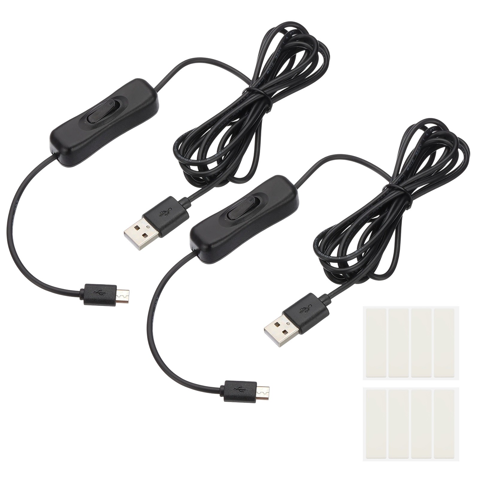 2Pcs USB Cable with Switch USB Male to Micro USB Male Extension Cord 1M Black