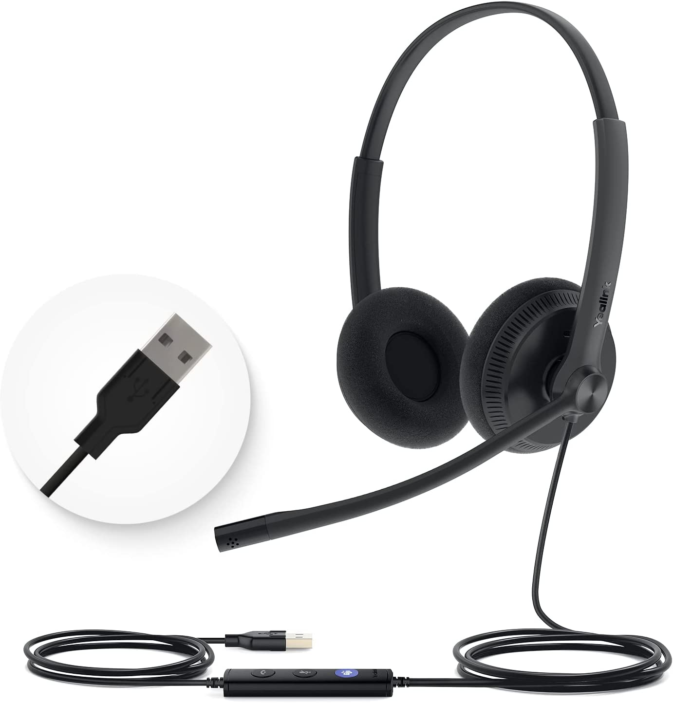Yealink UH34 Headset Certified for Microsoft Teams USB-A Stereo Headsets with Microphone Noise Cancelling for Call Center Business Office VoIP Phone
