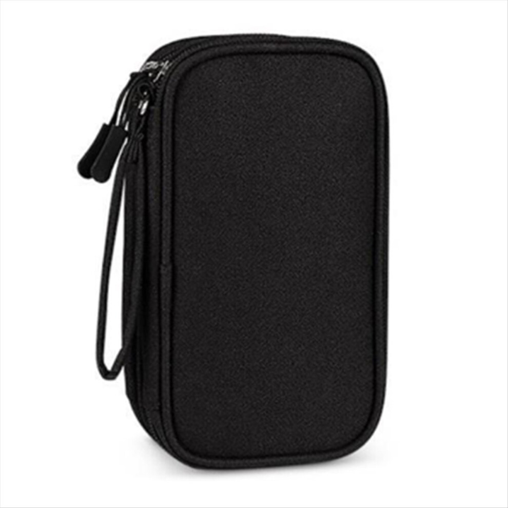 Portable Double-Deck Storage Bag for Digital Products-Travel Organizer USB Cables, Headsets & Accessories Black