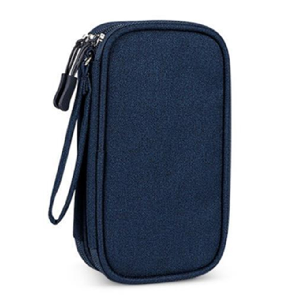 Portable Double-Deck Storage Bag for Digital Products-Travel Organizer USB Cables, Headsets & Accessories Navy Blue