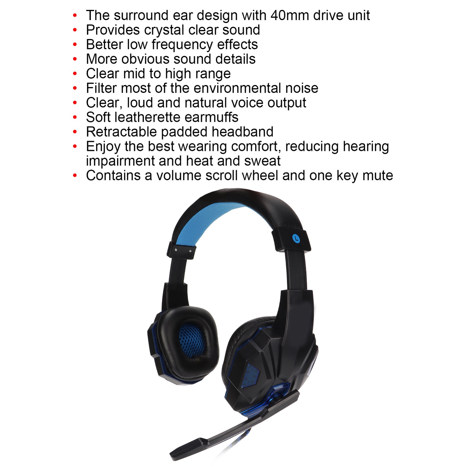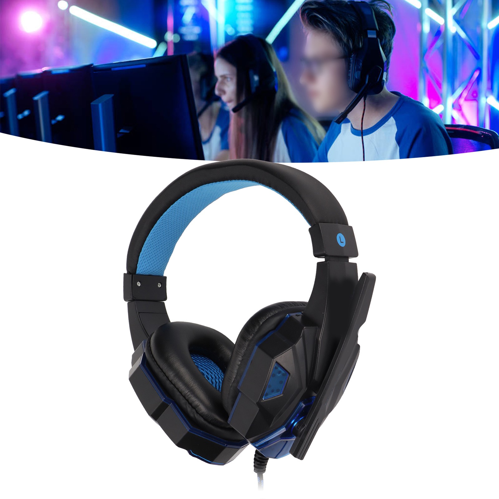 SOYTO SY830MV Game Headsets Adjustable Volume Support Mic Mute USB Headsets with 3.5mm Microphone for PS4 PC Laptop(Black Blue )