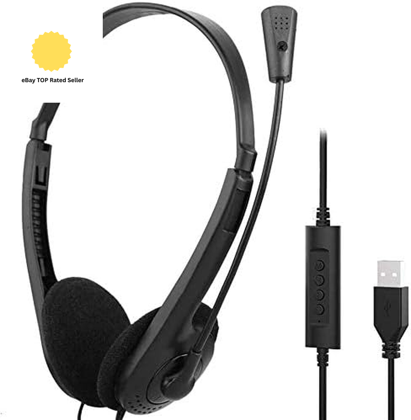 USB PC Headsets with Microphone Noise Cancelling Mic & Audio Controls Wired