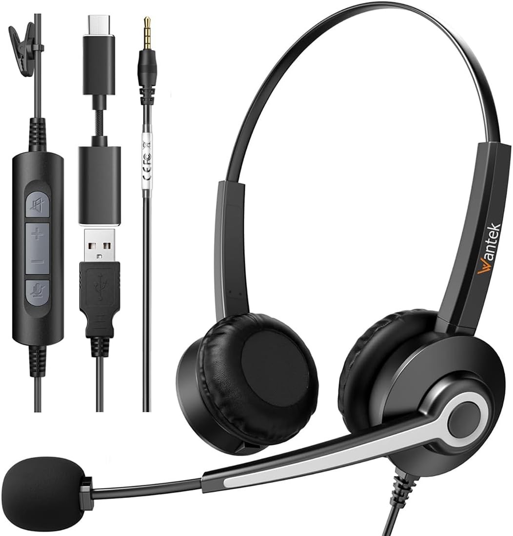Wantek USB Headsets with Microphone,3.3m Length Noise Cancelling Headset Stereo