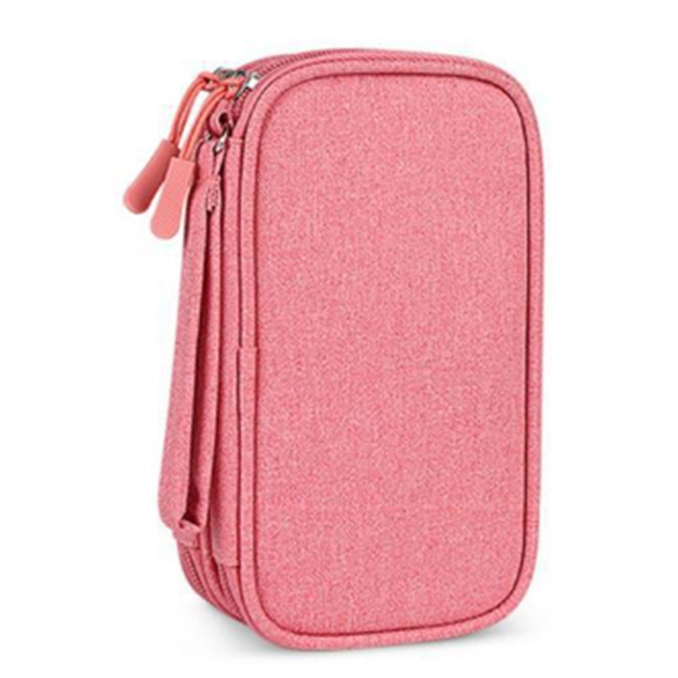 Portable Double-Deck Storage Bag for Digital Products-Travel Organizer USB Cables, Headsets & Accessories Pink