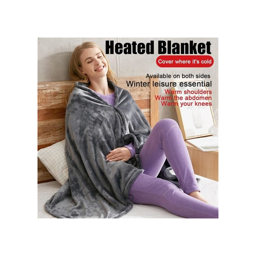 (Grey) USB Electric Heated Blanket Soft Heated Office Use Throw Winter Warmer Shawl